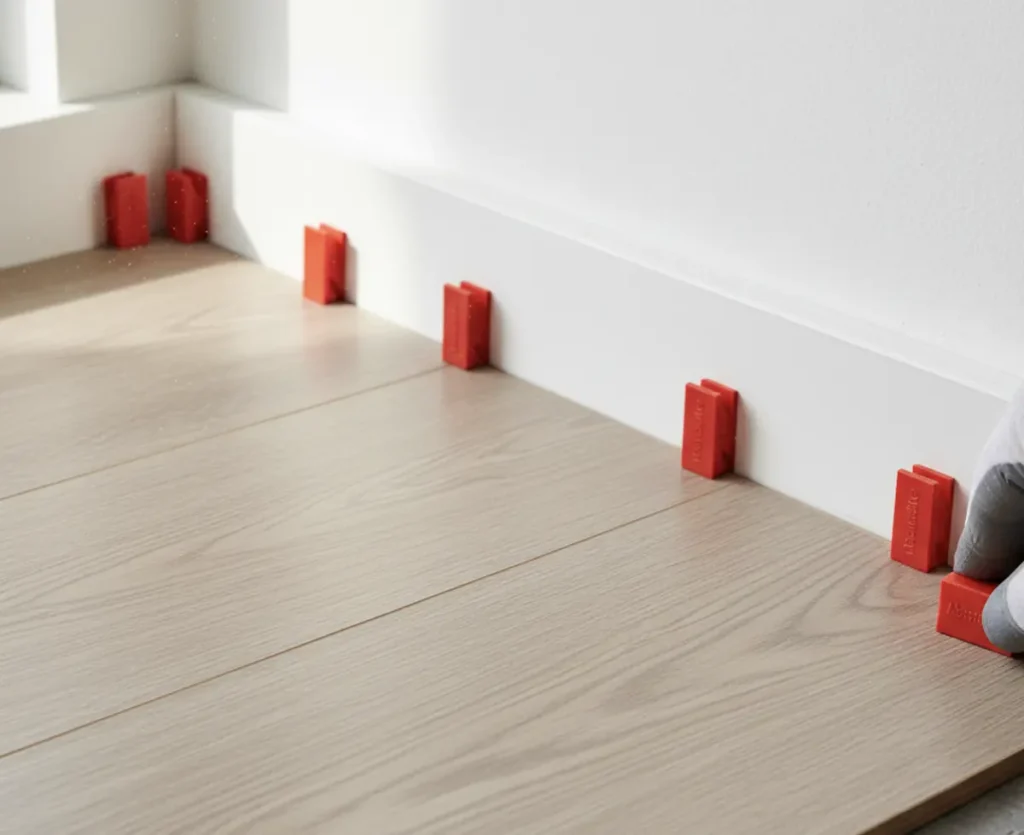 Nachdem der gesamte Boden verlegt ist, entfernen Sie die Abstandskeile. Die Dehnungsfuge wird nun elegant durch die Sockelleisten verdeckt. Wie Sie diese perfekt und ohne sichtbare Nägel montieren, erfahren Sie in unserem Guide zum Kleben von Sockelleisten.