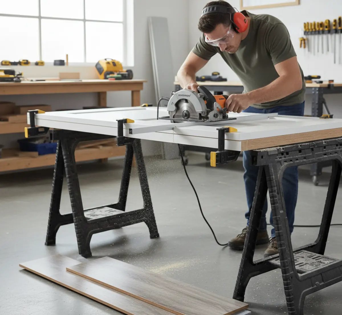 Achtung, Kollision mit der Tür: Prüfen Sie vor der Verlegung die Gesamthöhe von Unterlage und Laminat. Öffnen und schließen Sie die Tür. Wenn der Spalt unter dem Türblatt zu gering ist, muss die Tür ausgehängt und unten gekürzt werden. Dies ist ein entscheidender Schritt, um spätere Probleme zu vermeiden.