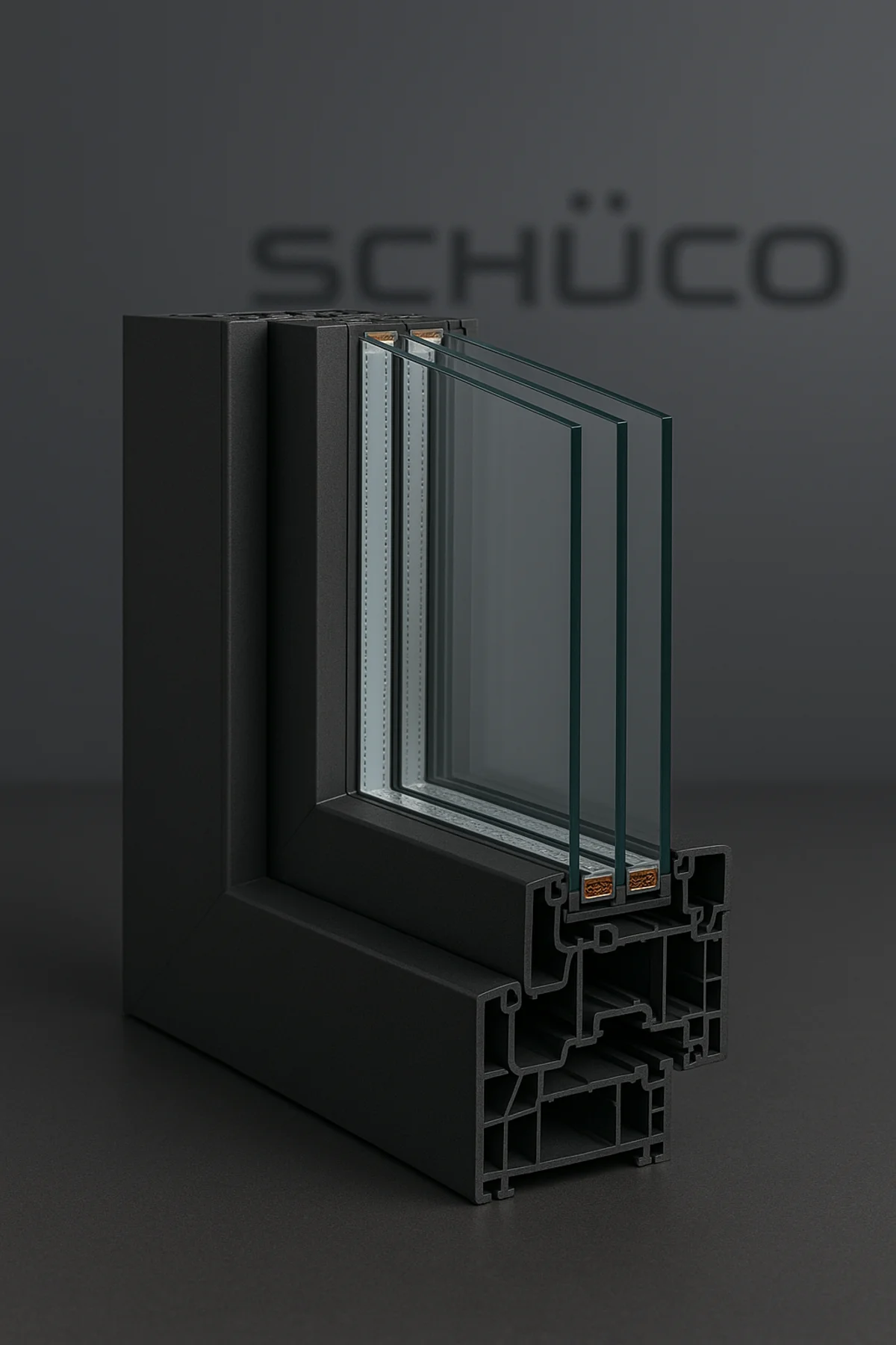 | Schüco LivIng | 7 | 3 (mit Mitteldichtung) | 0,74 W/(m²K) | Passivhaus-tauglich, Premium-System |