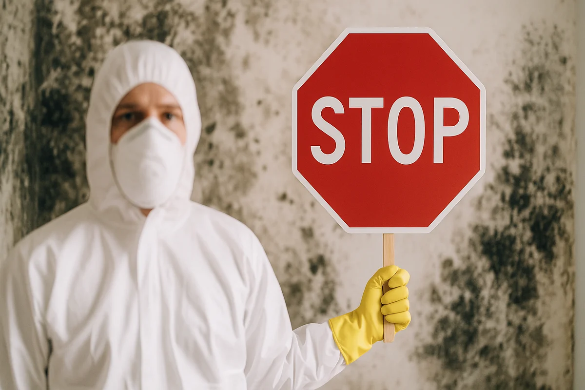 Bei der Schimmelbekämpfung steht Ihre Gesundheit an erster Stelle. Versuchen Sie sich NICHT selbst an der Beseitigung, wenn einer der folgenden Punkte zutrifft. Kontaktieren Sie in diesen Fällen umgehend einen Fachbetrieb für Schimmelsanierung: