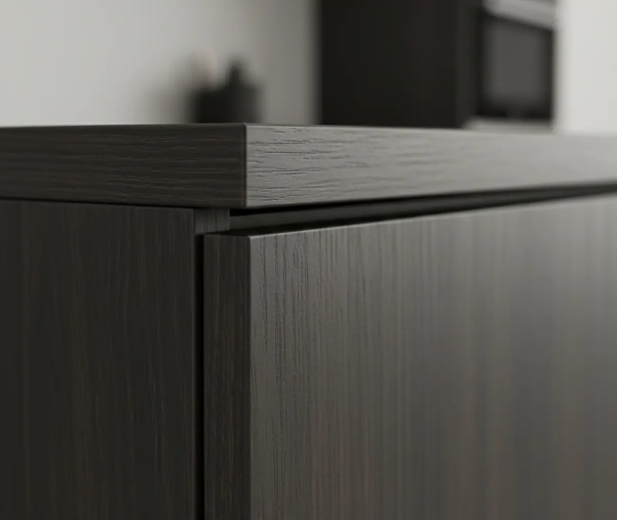 Die Qualität der Front hängt auch vom Kernmaterial ab. MDF-Platten sind dichter und homogener, ideal für Lack und Folie. Spanplatten sind wirtschaftlicher und in Kombination mit HPL sehr robust. In Feuchtezonen sollte auf feuchtebeständige Varianten (MR-MDF, Span P3) geachtet werden.