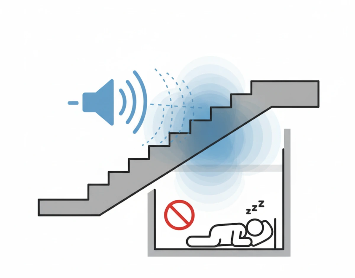 Massive Betontreppen sind aufgrund ihrer hohen Masse unübertroffen im Schallschutz. Bei leichteren Holz- oder Stahltreppen ist die konsequente elastische Entkopplung aller Anschlüsse an Wände und Böden entscheidend, um die Übertragung von Trittschall zu verhindern.