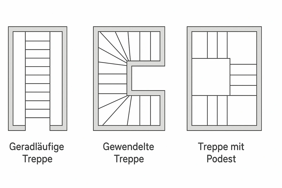 - Spindeltreppe: Benötigt die kleinste Grundfläche, ist aber im Alltag am wenigsten komfortabel.