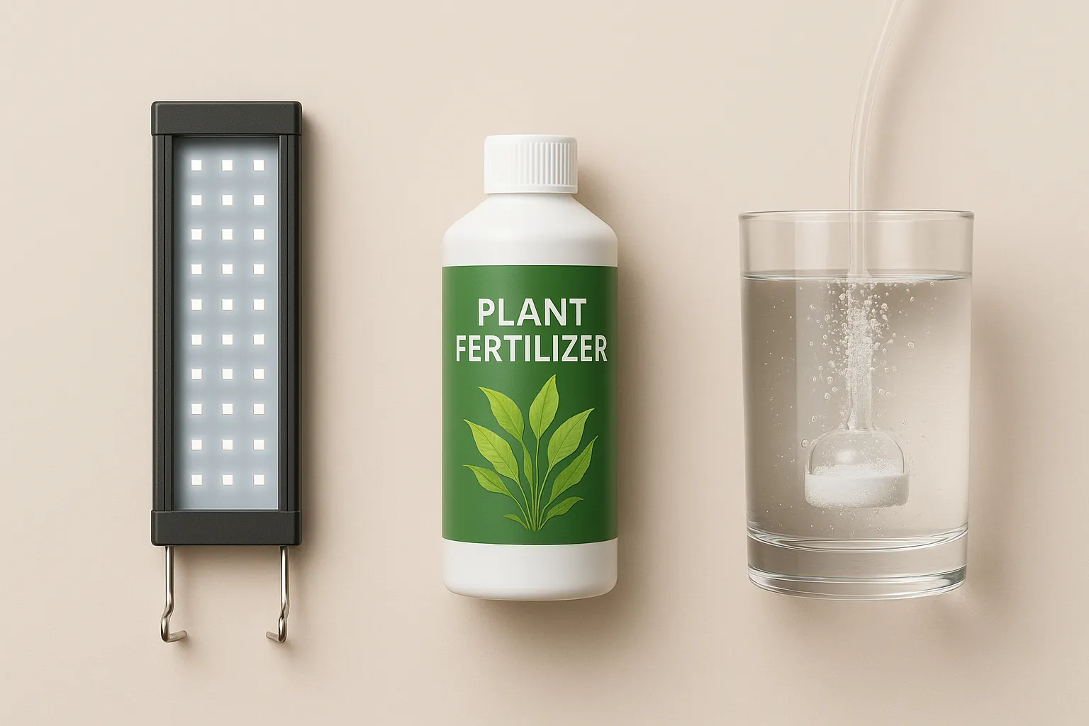 | Schwachlicht | 15–25 lm/l | Anspruchslose Pflanzen (Anubias, Javafarn, Moose), reine Fischaquarien. |