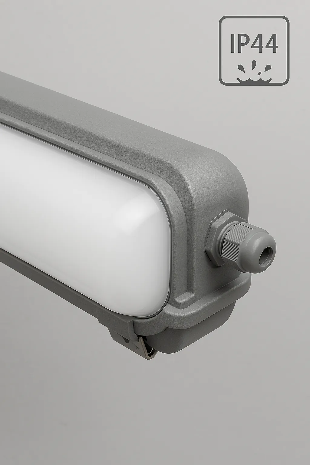 Eine robuste und spritzwassergeschützte IP44 LED-Feuchtraumleuchte für die Garage.