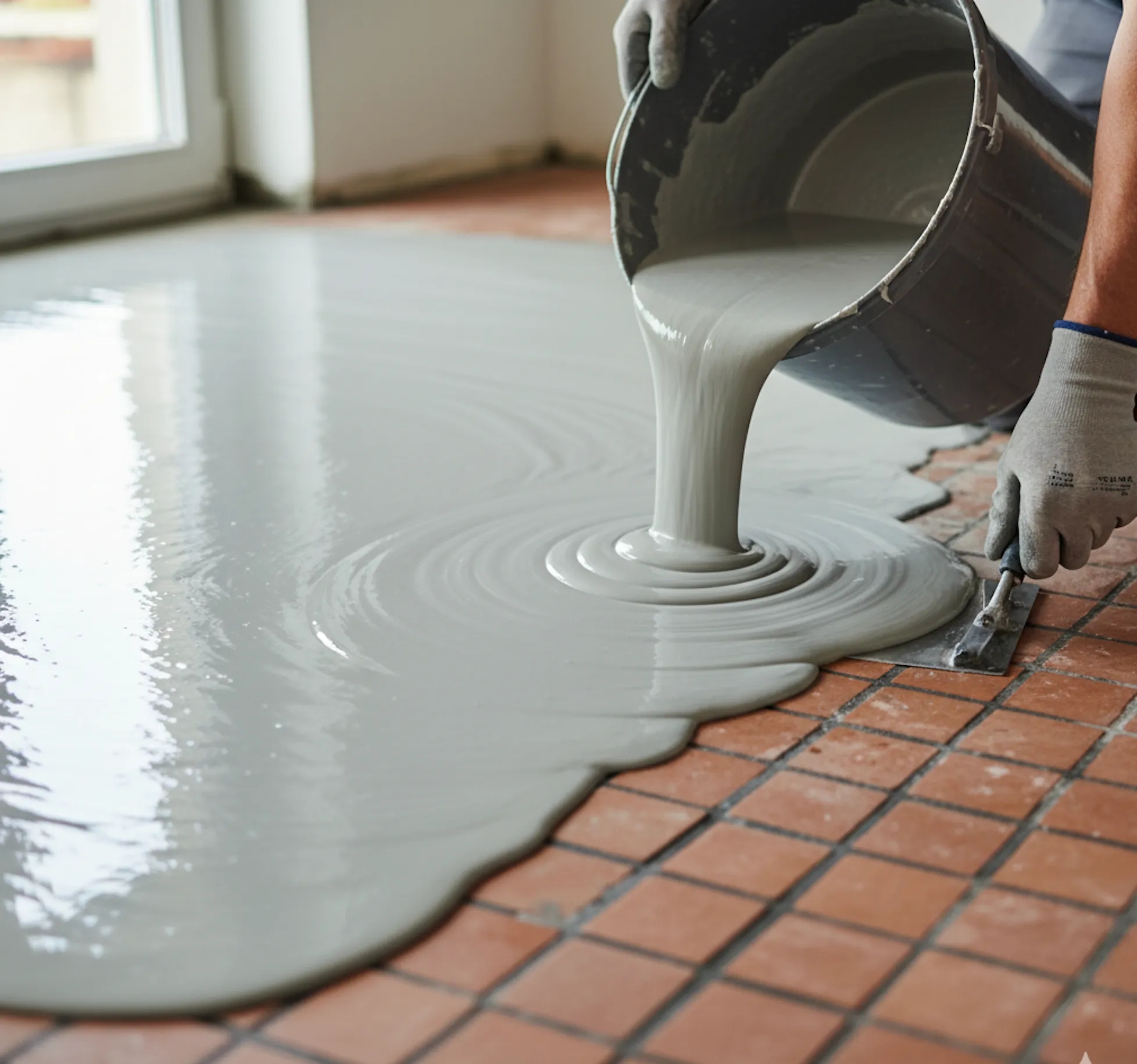 - Technische Voraussetzung: Der alte Fliesenboden muss mit einer geeigneten Grundierung und einer selbstverlaufenden Ausgleichsmasse (mind. 3 mm dick) perfekt geglättet werden. Nur so entsteht eine plane Fläche, die für die Verlegung von Vinyl geeignet ist.
