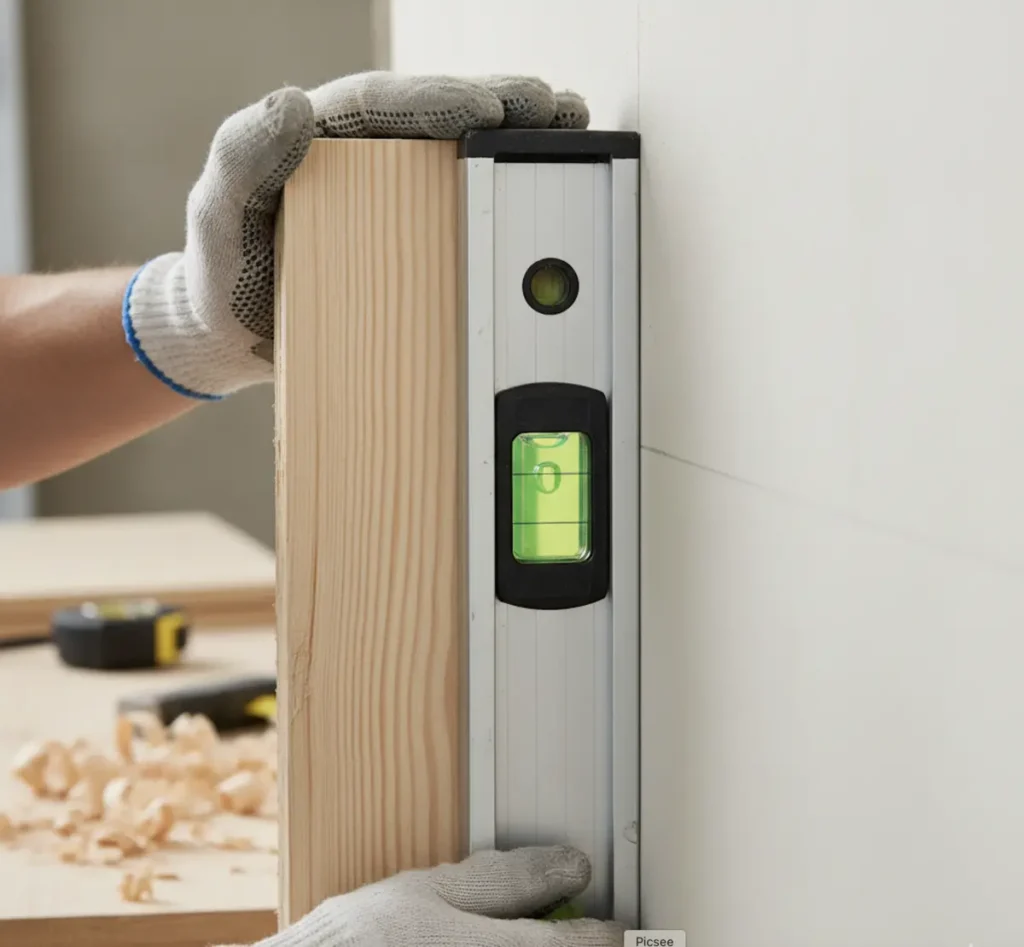 Verlassen Sie sich niemals darauf, dass Ihre Wände oder Decken perfekt gerade sind. Der Erfolg der gesamten Wand hängt von der exakten Ausrichtung des ersten Paneels ab. Beginnen Sie in einer Ecke. Zeichnen Sie mit der Wasserwaage eine exakte senkrechte Startlinie an die Wand. An dieser Linie wird das erste Paneel ausgerichtet.