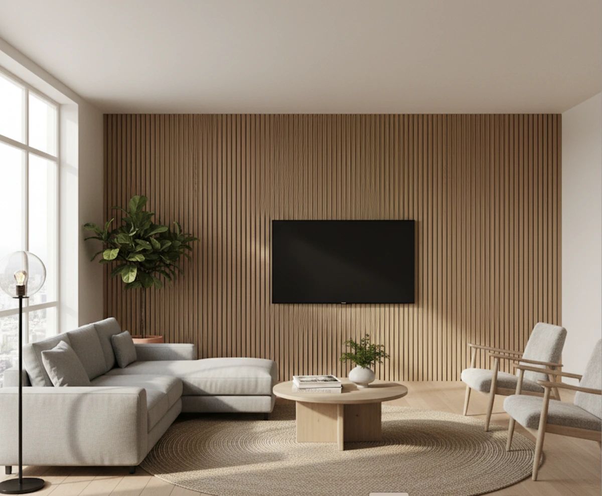 - Akustikpaneele: Der aktuelle Trend. Sie bestehen meist aus Holzlamellen auf einer Filzunterlage. Sie sehen nicht nur extrem stilvoll aus, sondern verbessern auch spürbar die Raumakustik, indem sie Schall absorbieren. Perfekt für Wohnzimmer oder Heimbüros.